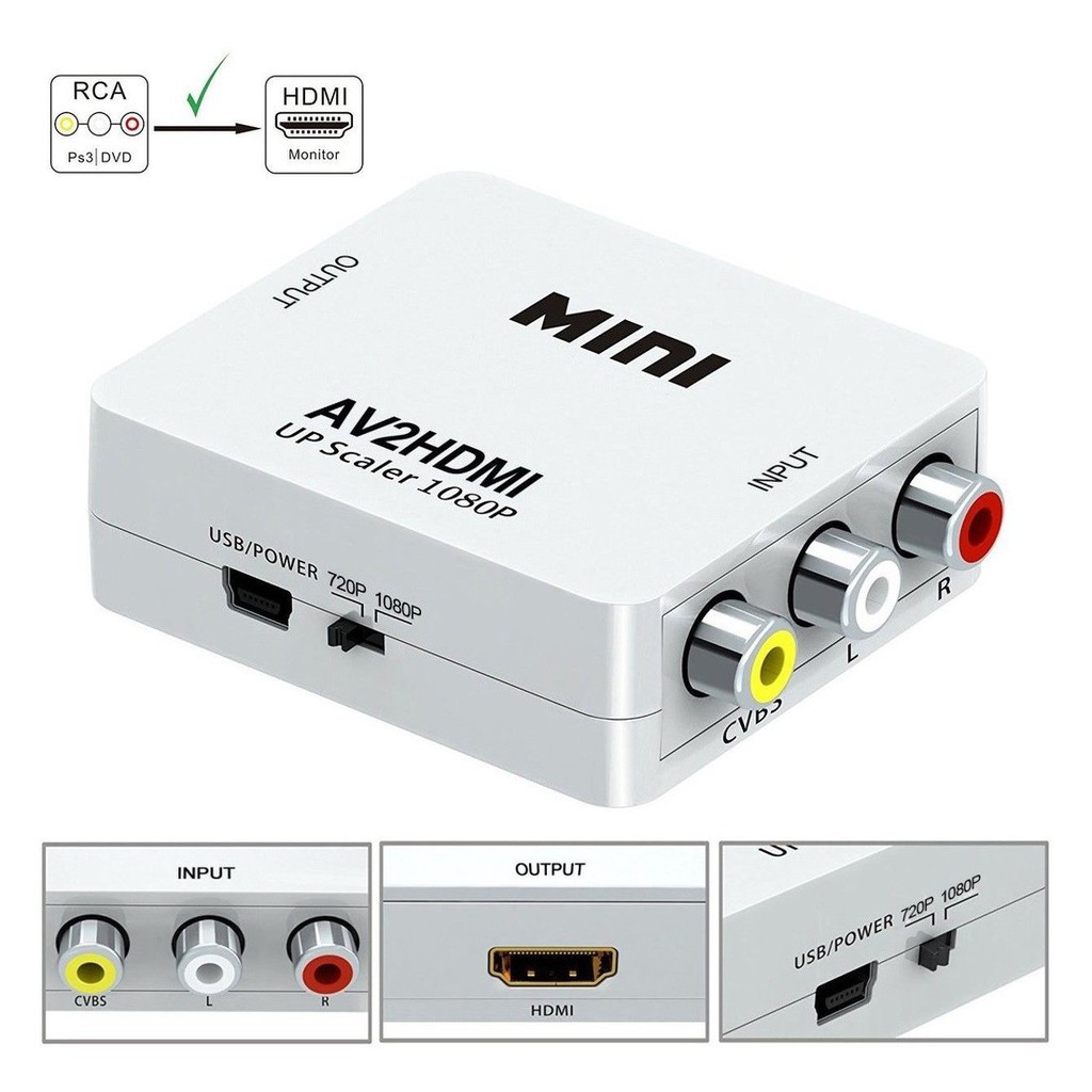 How to Use an AV to HDMI Converter. Depending on the composite video to HDMI adapter your composite video connection yellow video red and white audio outputs can be converted to HD video. A user is given the optimum enjoyment of high definition sound and image when heshe watches movies of pays games from the traditional YPbPr monitors or projectors.